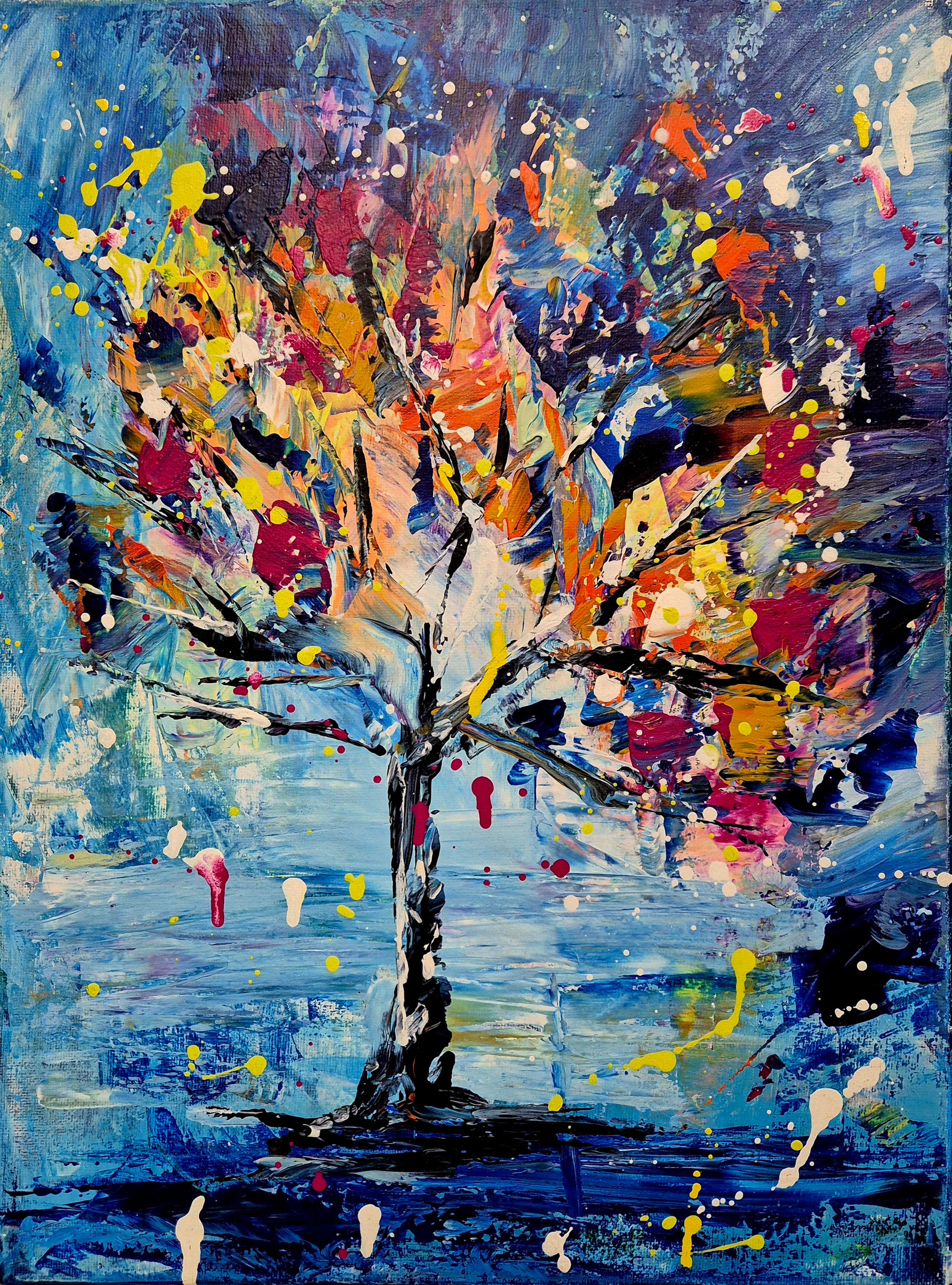 60 x 60 x 4.5 cm Original mixed media oil painting on gallery canvas . Ready to hang.